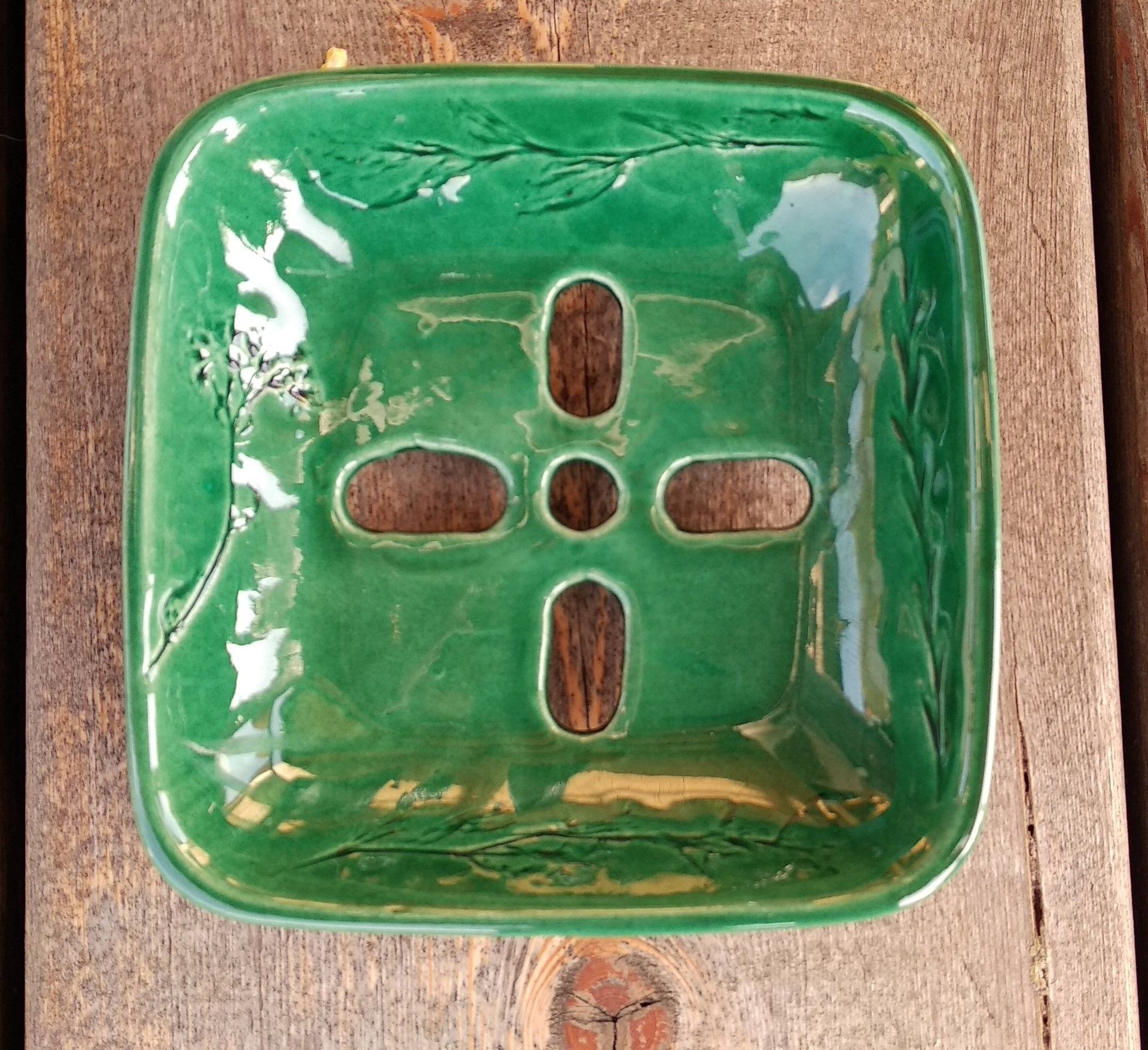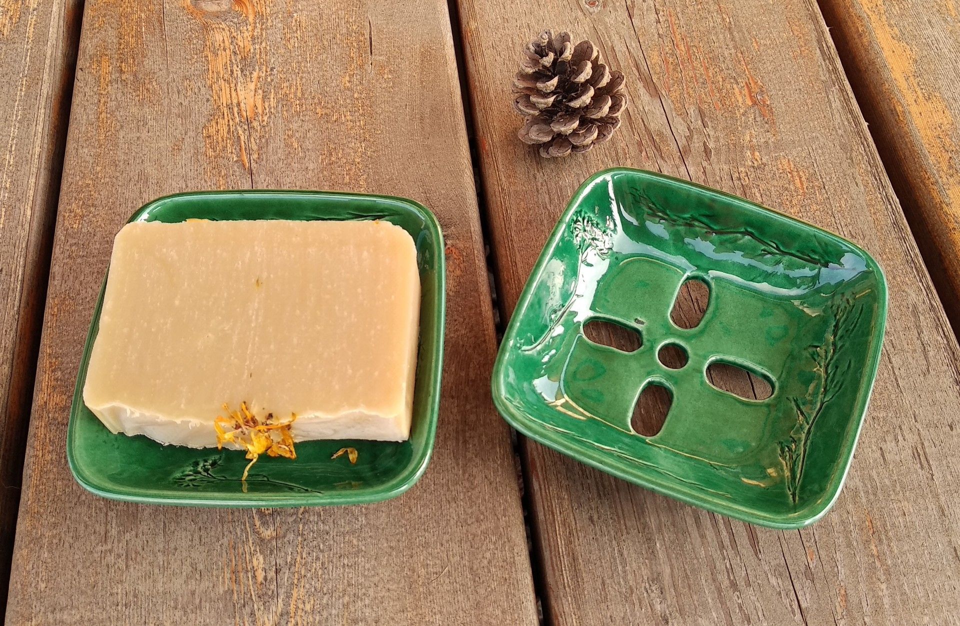 Keramická mydelnička s bylinkovým motívom. Mydelnička stojí na nožičkách, aby prebytočná voda mohla odtiecť. Jednotlivé kusy sa môžu líšiť v závislosti od druhu použitej bylinky, každá mydelnička je originál.