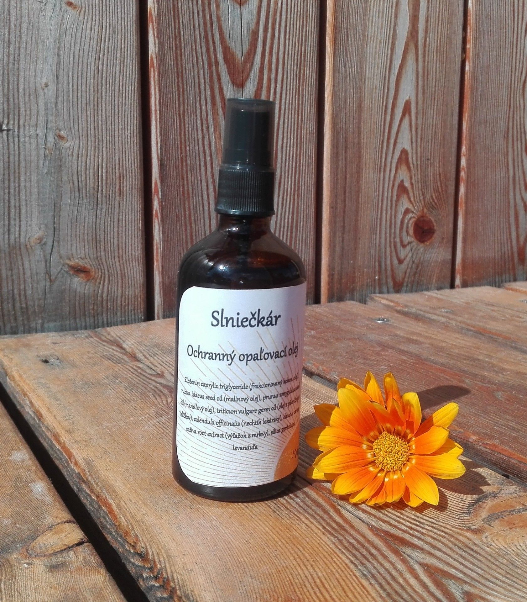 • Slniečkár svojím žložením podporuje prirodzenú ochranu pokožky, dodáva jej množsvo betakaroténu, ktorý je obsiahnutý vo výťažku z mrkvových tkanív (vlastná výroba).